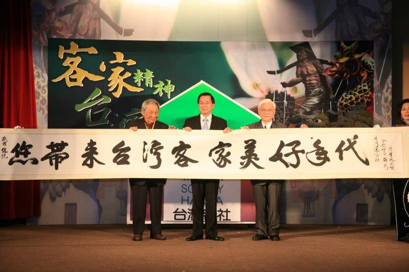 陳總統水扁先生今天下午參加台灣客社成立大會,向所有的客家先進獻上最高的敬意與由衷的祝福,並敬祝該社社務順利、客家文化鴻圖大展、客家精神永續流傳。