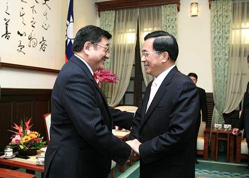 蒙古國奧其爾巴特前總統、前財政部長Bat-Erdene Batbayar等上午由蒙藏委員會委員長許志雄陪同,前來總統府晉見總統。總統府秘書長陳唐山也在座。