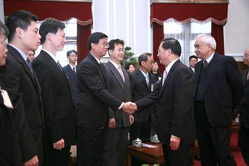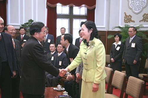 95年「全國模範公務人員」財政部北區國稅局局長凌忠嫄等67人,上午由行政院人事行政局局長周弘憲陪同前來總統府接受總統道賀。考試院院長姚嘉文、行政院副院長蔡英文、考試院秘書長張俊彥、銓敘部部長朱武獻及總統府副秘書長卓榮泰也在座。