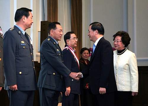 總統在主持授勳儀式後致詞表示,國防施政攸關國家的安全與人民的福祉,國軍應持續強化組織的精進與兵力的調整、全力爭取質的優勢,以建構一支足以「有效嚇阻、防衛固守」的基本武力,積極預防任何武裝衝突或者戰爭的發生。而國軍各級領導幹部也必須深刻體認國軍角色的轉變,恪遵憲政的規範,嚴格貫徹軍隊國家化的要求,以國家的永續發展、人民的福祉與安危為依歸,積極發揮安定社會人心的力量,使國軍真正成為國家的軍隊、人民的軍隊。