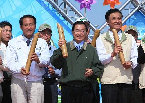 剛才農委會主委蘇嘉全致詞說要感謝陳水扁,這是不對的,反而是陳水扁要感謝大家、感謝屏東人,因為屏東人很棒可以選出多位傑出的政治人物,包括蘇貞昌院長與蘇嘉全主委,兩位都是大家所選出來、所培養出來的老縣長,這不是串通好的,因為大家都知道,當時阿扁為了平衡南北、平衡城鄉差距,所以特別將農業生物科技園區設在屏東,並加以關注與支持,才有今天的成果。但當時我絕對沒想到後來蘇嘉全縣長能到中央擔任內政部長,現在又出任農委會主任委員、農業部部長,我相信這是天意,因此大家不要誤會是特別選在屏東,這完全是巧合,當然也是天意。而大家當然也不會想到前縣長蘇貞昌現在是行政院院長,有些人信風水說,台灣的總統過去是台北縣出身,現在是台南縣出身,聽說會愈來愈向南走,所以會走到高雄或屏東我就不得而知了,但是高屏地區總是有機會的,希望大家繼續努力、打拚。