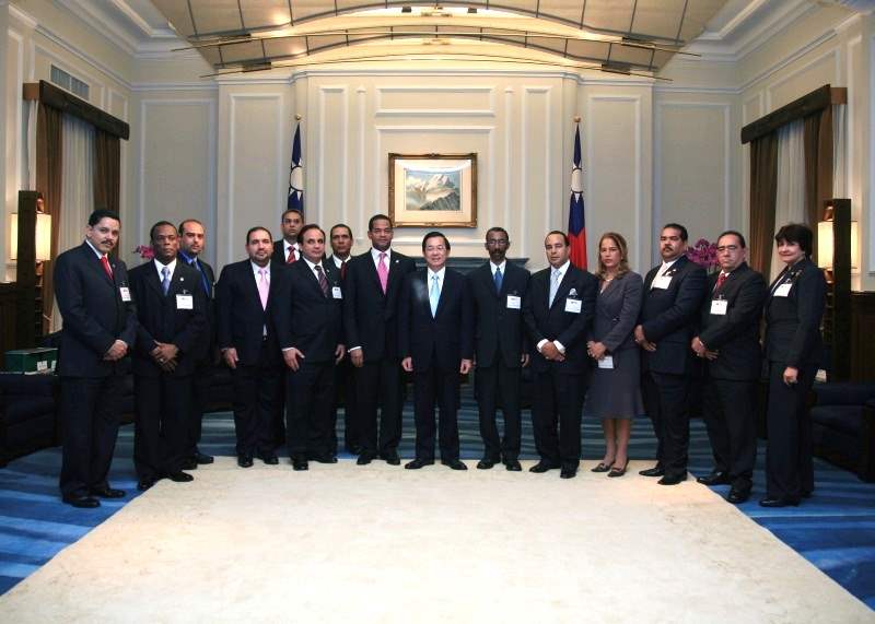 多明尼加共和國眾議院議長瓦倫汀率國會訪問團一行,下午由外交部次長侯清山陪同,前來總統府晉見總統,總統府副秘書長劉世芳也在座。