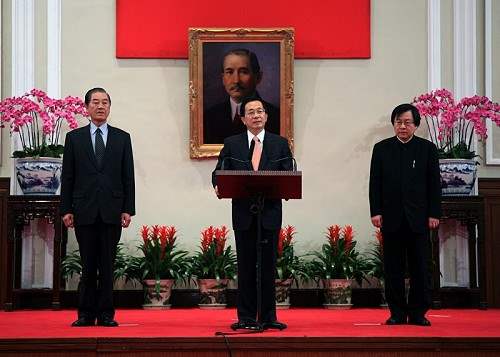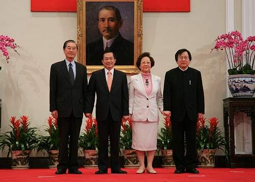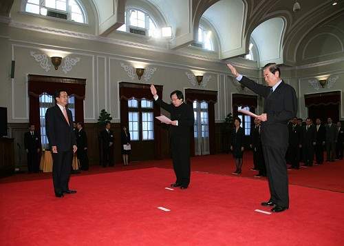 非常高興今天主持總統府與國安會兩位秘書長的宣誓典禮,我們也非常感謝呂副總統的監交,雖然幕僚單位希望宣誓與交接能夠一併舉辦,也希望我能夠擔任監誓人又是監交人,但是我們認為雖然總統府秘書長與國安會秘書長職務的互換是有史以來的首例,但是過去由副總統負責監交的傳統,還是希望能夠加以維持。