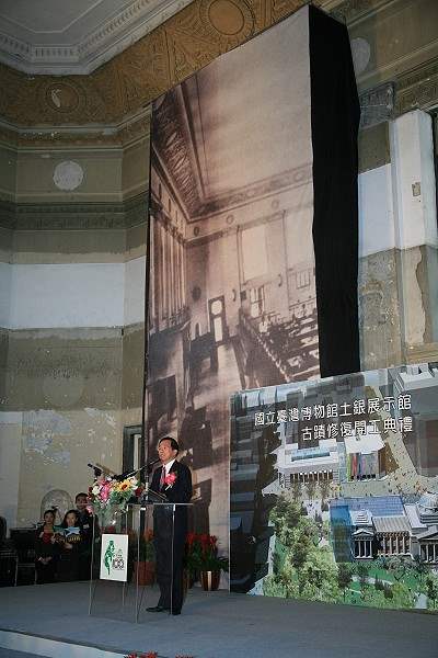 總統除為典禮致詞,致詞後並以刷子輕刷建物飾板方式,象徵該館修復工程開始,同時也參觀建物殘片、歷史文獻展示與金庫。