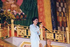 呂副總統秀蓮女士今天上午分別參加第三屆民視台語文研討會及九十一年全國供佛僧齋大會暨仁王護國息災大法會,並應邀致詞。