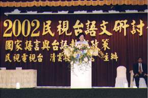 副總統並舉紐西蘭及澳大利亞兩國的語言政策與法律規定,供與會者們討論我國國家語言與台語教育政策的參考,她說,我們一定要確保二千三百萬人使用其語言的平等地位,而如何讓語言與語文互相結合,用字不致產生混亂,以及如何加強我國幼童除國語、英語以外的母語教育,是全民應共同面對的課題。