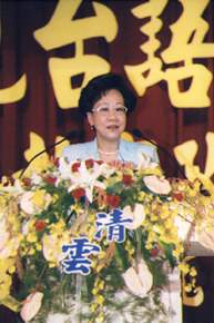 副總統進一步強調,語言的發展是一門深奧、有機的學問,會隨時代一起進步,她期許學術單位能繼續作整合性的研究,而在現階段如何讓語言發揮社會化功能,使每個人都能以說媽媽教的語言為榮,進而成為有尊嚴及世界化的台灣人,有待大家不斷的努力。