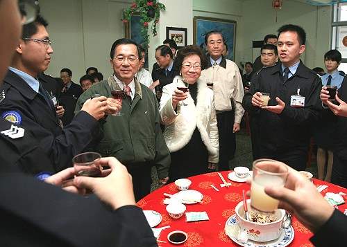 今天是農曆除夕,陳總統水扁先生偕呂副總統秀蓮女士下午在國家安全會議秘書長陳唐山及國防部長李傑等陪同下,分別視察國軍聯合作戰指揮中心與空軍作戰指揮部,除利用視察機會向值勤官兵們拜早年之外,也向國軍所有犧牲假期、戰備值勤的袍澤弟兄,表達最誠摯的感謝與慰問之意。