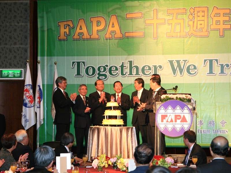陳總統水扁先生今天晚間出席「台灣人公共事務會」(FAPA)25週年慶祝晚宴,並致詞慶賀FAPA 25歲生日快樂。