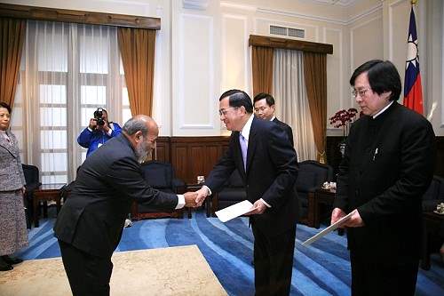 諾魯共和國首任駐台特命全權大使柯克(Ludwig D. Keke)今天向陳總統水扁先生呈遞到任國書。