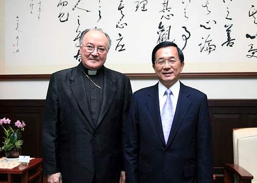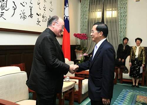 對於教宗長期以來不斷在國際社會傳播民主、自由、人權、正義、平等以及四海一家的福音,總統也表達高度的肯定及推崇之意,教宗還特別將每年的元旦定為世界和平日以及發表世界和平文告,總統強調,他本人及我國政府每年都對文告內容給予最大的支持與響應,並感謝天主教教會長期以來不遺餘力地在台灣從事興辦學校、建醫院、照顧弱勢、深入偏遠貧困地區及關懷外籍移民等善舉。