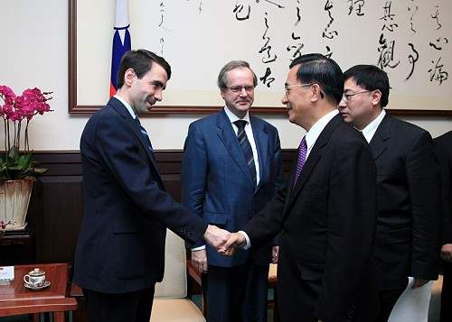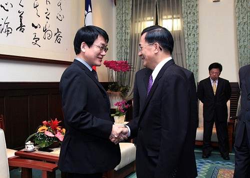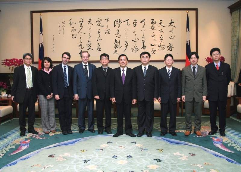 來台參加「憲法變遷與憲政改造」研討會海外學者一行,由團長孝忠延夫教授帶領、台灣法學會理事長陳慈陽陪同,前來總統府晉見總統,總統府副秘書長陳其邁也在座。(E)