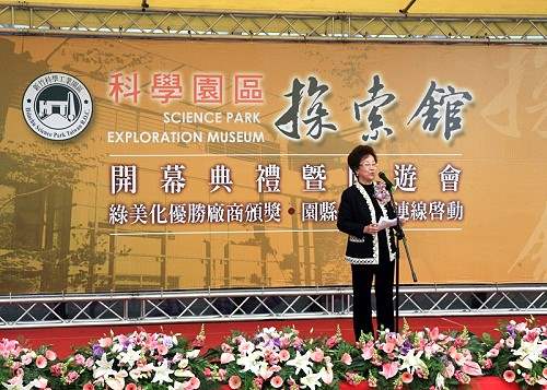 隨後,副總統為「科學園區探索館」揭牌,宣布探索館正式成立,並實地參觀館區與配合今天活動而舉辦的園遊會,與現場熱情民眾互動,向他們問候致意。
