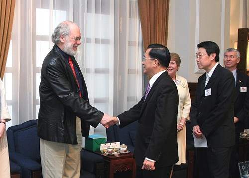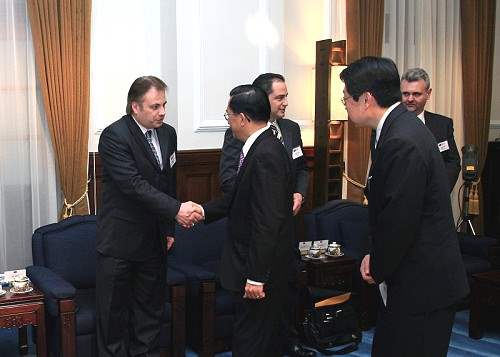 團長李建堡(Larry Campbell)參議員,也是前溫哥華市長首先感謝總統撥冗接見,並表示此行不只是來學習也希望能與台灣的市長們分享經驗,因為市政運作大同小異,都必須處理人口、交通、住屋及社會治安等問題,期待能與台灣各地的市長及中央政府交換意見。