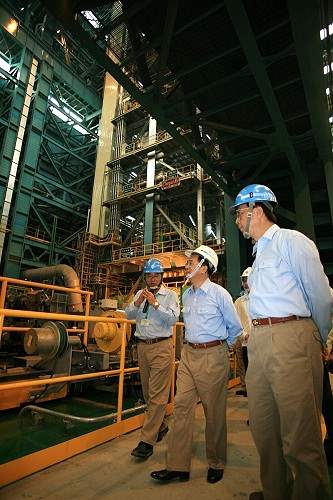 「中鋼」雖然已經民營化,但由於股東的支持,整個經營團隊還是由政府所遴派。自2000年本人擔任總統以來,「中鋼」的營運績效可以用「火紅」這兩個字才能夠來形容。2000年的稅前純益為216億元,2003年「翻兩番」加倍成為451億元,到了2004年更是「翻三番」成長為651億元,等於一年365天,扣除週休二日,每天淨賺2億元。去年景氣差一點減少為476億元,今年依據最新的統計,一至二月份累積盈餘為102億元。未來隨著第二條「熱浸鍍鋅線」的投產,所生產的「熱浸鍍鋅」產品的年產量將由目前的30萬公噸,提高一倍至60萬公噸,使產值增加74億元,在這樣的基礎之上,相信今年的營收一定可以再創佳績。