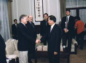 參加「亞太民主合作論壇大會」與會外賓柯拉默(Franklin Kramer)等一行,下午是由外交部次長高英茂及世盟總會長張建邦資政及亞盟秘書長彭明敏資政陪同,前來總統府晉見總統,總統府秘書長陳師孟也在座。