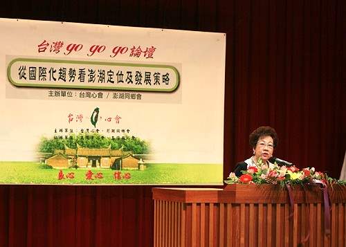 副總統在「澎湖論壇」時與現場與會者就台灣觀光發展廣泛交換意見,她表示,澎湖發展的問題應該要多面向來考量,迎接21世紀,澎湖究竟要扮演什麼樣的角色?需要做前瞻性的規劃。