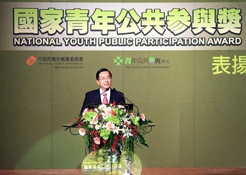今天非常榮幸能參加「國家青年公共參與獎」表揚大會,這個獎項在去年的時候叫做「青年公共參與獎」,今年我們提升了它的位階到國家層級,可以說是對青年公共參與最高的肯定和榮譽。事實上,為了鼓勵青年參與公共事務,從2004年開始,我們舉辦「青年國是會議」;2005年成立「青年公共參與學苑」;2006年舉辦第一屆「青年公共參與獎」,並且在2007年提升到國家層級,為的就是要凸顯政府與社會各界對於青年公共參與的支持與肯定,本人在此也要特別向青輔會以及所有的工作團隊致上最高的敬意與由衷的感謝之意!