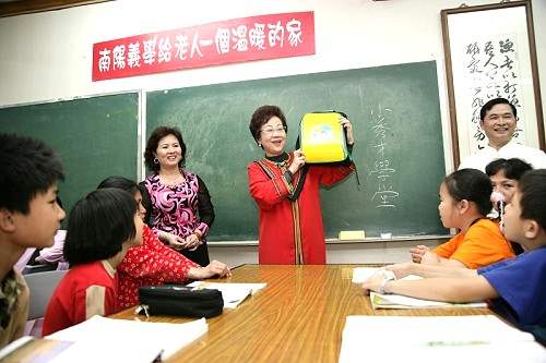 隨後,副總統前往羅東鎮訪視名為「南陽義學」的小秀才學堂。一踏進學堂,即受到小朋友們的熱烈歡迎,問候聲此起彼落,副總統親切地與小朋友們聊天,並感謝支持義學的課輔老師,對他們發揮愛心,無私的奉獻,表達高度的肯定之意。在小朋友們的熱烈鼓掌下,副總統並將精美實用的書包送給小秀才們,期許他們好好用功唸書,將來做個爭氣的人,為社會國家的發展與進步,作出貢獻。