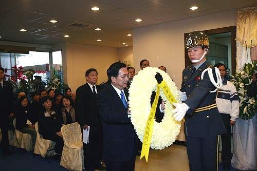 總統首先獻花致悼,隨後頒給軍階、勳(獎)章,由家屬代表接受。