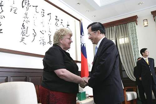 陳總統水扁先生今天上午接見加拿大長老教會第132總會議長委厲心(Wilma Welsh)暨婦女海外宣道會,代表政府與人民感謝加拿大長老教會百年來對台灣的關注與支持。