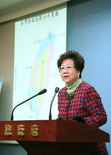 呂副總統秀蓮女士今天下午在總統府召開記者會,向國人說明她對國土規劃及行政區域重新劃分的構想與理念。