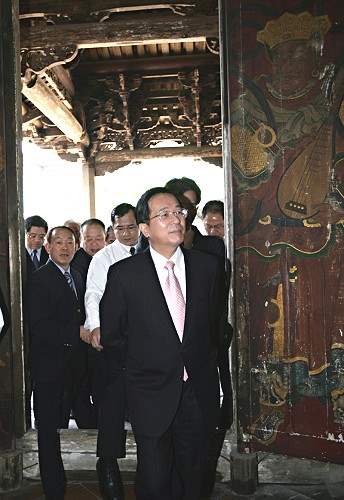 總統視察時,首先聽取修復人員就該寺建築特色及目前修建進度的簡報,隨後參觀該寺設施,並分別在拜殿及正殿參拜,祈求國泰民安、風調雨順、國運昌隆、該寺香火鼎旺以及修復工程順利進行。