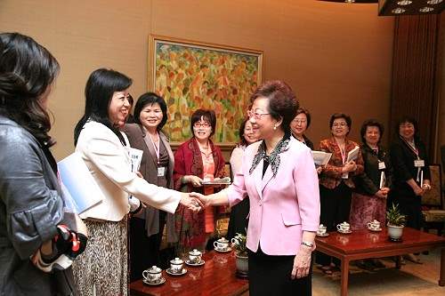 副總統並告訴訪賓們台灣社會未來可能面對的變遷與挑戰。她指出,現代人盛行「不婚、不育、不養」的想法,愈來愈多人不願結婚,或是婚後不想馬上生育子女,以致台灣社會由過去的「多子多孫多福氣」觀念,轉變為每對夫妻平均僅生育1.12個子女,人口結構已呈現負成長趨勢。此外,拜醫學進步發達之故,台灣人平均壽命逐漸增加,正式邁向高齡化社會。因此,在少子化與人口高齡化兩個因素交互影響下,40年後的台灣人口將由現今2300萬減少為1700萬,屆時65歲以上老年人口將多達700萬,20歲以下人口只有200萬,而具有生產能力的800萬人口,卻需擔負將近1000萬人的生計,這個社會發展現象值得國人共同關注。副總統強調,關心台灣不能只注意經濟問題,未來人口結構變化衝擊所引發的人文危機更要及早因應,才能夠面對全球化時代更嚴峻的挑戰。
