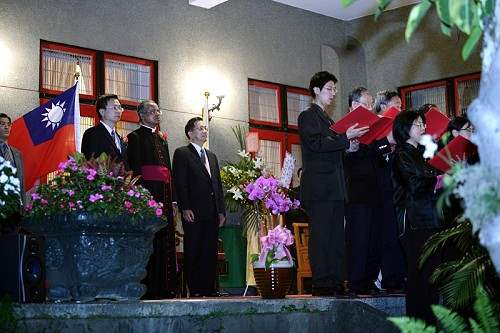 今天本人非常榮幸,出席教廷駐台大使館舉辦的慶祝教宗本篤十六世就任二週年酒會,首先謹代表我國政府及二千三百萬台灣人民,向教宗聖座及安博思蒙席,表達最誠摯的祝賀之意,同時,教宗聖座甫於三天前、四月十六日歡度八十歲大壽,所以本人也要代表我國政府和人民誠摯獻上「聖誕快樂」的祝福。