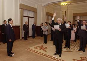 陳總統水扁先生今天親自主持新任考試院院長姚嘉文及考試委員等二十人宣誓儀式。