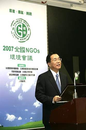 陳總統水扁先生今天上午出席「2007全國NGOs環境會議」開幕儀式,並應邀致詞。