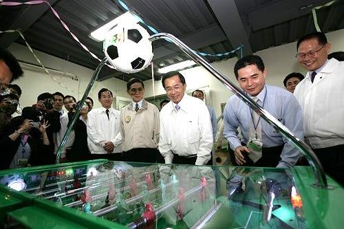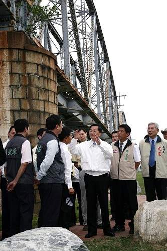 隨後,總統轉往訪視高屏下淡水溪舊鐵橋及生態溼地,分別聽取高雄縣政府文化局、水利局就舊鐵橋古蹟維護、人工溼地經營績效所作簡報,中午並參觀位在大發工業區的寶凱電子公司與武馬行企業。