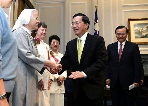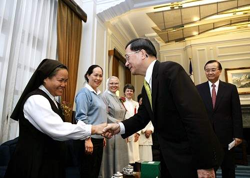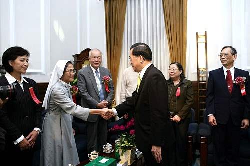「第17屆醫療奉獻獎」特殊貢獻獎得獎人邱文達醫師、個人奉獻獎陸幼琴修女、斐彩雲修女、滿詠萱修女、陳博憲醫師、林異醫師(林明思代表)、團體奉獻獎關山聖十字架療養院代表高德蘭修女,下午由行政院衛生署署長侯勝茂陪同,前來總統府接受總統道賀。總統府副秘書長陳其邁也在座。