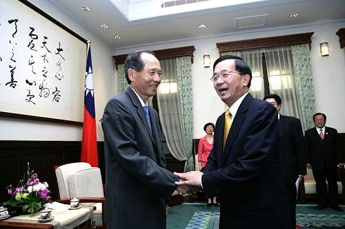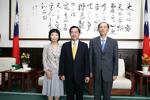 韓國慶南大學校長朴在圭夫婦今天下午由外交部次長張小月、韓國駐台代表吳相式陪同,前來總統府晉見總統,總統府副秘書長卓榮泰也在座。