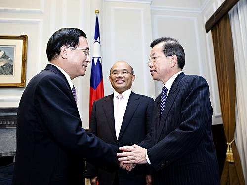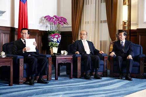 總統下午會見四位參選人時,總統府秘書長邱義仁也在座。