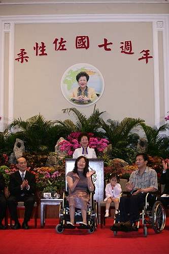 在就職7週年前夕,呂副總統秀蓮女士今天上午在總統府邀請了7年來參與她所提倡的各項政策人員代表,以及她所認養的孩童,一起共渡7週年紀念。