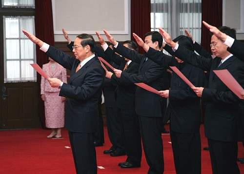 陳總統水扁先生今天上午在總統府主持新任行政院院長、副院長及內閣閣員等新任政府首長宣誓典禮。