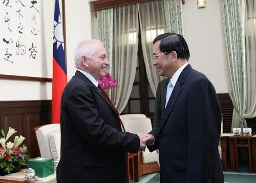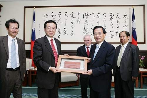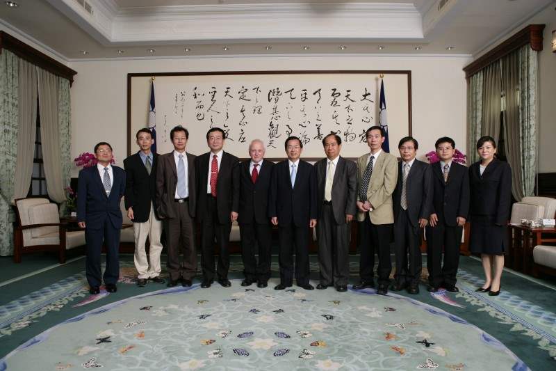 國際發明家聯盟總會(IFIA)總會長Andras Vedres,下午在台灣發明商品促進協會副會長劉文熒陪同下,前來總統府晉見總統,總統府副秘書長陳其邁也在座。