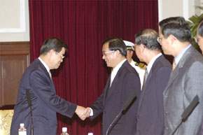 為落實經發會的共識,其中涉及法律的增修共五十九案,行政部門已完成五十八案,其中三十五案已完成立法程序。另二十三案已送請立法院審議。至於行政命令的部分,應增修八十案,已頒布七十四案,執行進度達九十三%。在這麼短的時間內能有這樣的成績,非常難能可貴,阿扁要在此向行政院張前院長和游院長,及立法院的王院長表示最高的敬意和由衷的感謝之意,同時也期待立法院新的會期開議後,能儘速完成所有經發會發法案的審議。