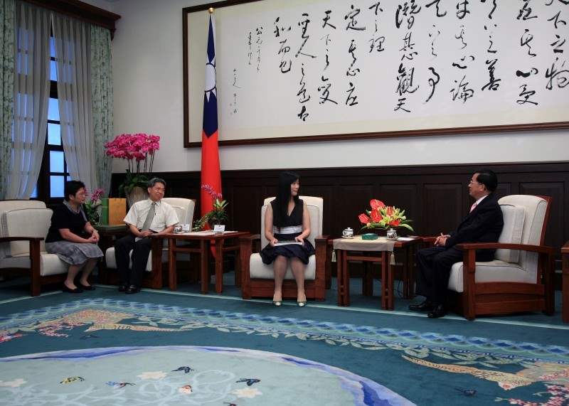 呂亞靜同學下午由父母呂學良夫婦陪同,前來總統府晉見總統,總統府代秘書長卓榮泰也在座。