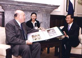 陳總統水扁先生今天上午在總統府與巴拉圭共和國總統鞏薩雷斯進行第二次的晤談,鞏薩雷斯總統並率領訪問團成員,一一向陳總統握手道別。