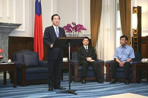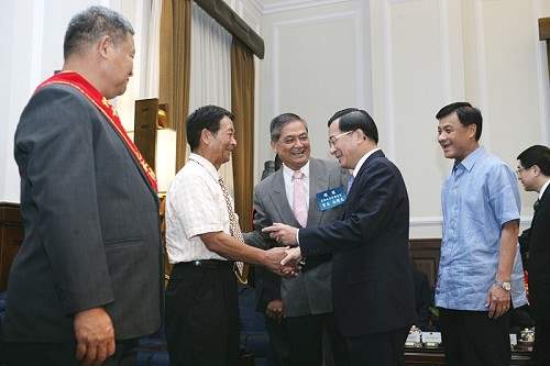 陳總統水扁先生今天在總統府接見96年度全國模範水利小組長,感謝他們多年在基層默默的守護農田水利建設,使台灣能夠展現無限的生機與活力。