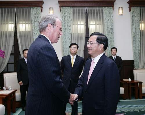 總統首先表示,很高興能繼去年6月後,今天再度與薄瑞光理事主席晤面,記得薄瑞光理事主席在去年2月正式上任後,旋即於6月安排訪台行程,兩人不但相談甚歡,他也在晤談中發表重要談話,再度重申,2004年對美國政府、布希總統及向世界所作的宣示與信諾,絕對不會有任何改變。在他個人未來不到一年的任期內,「四不」也不可能有任何改變。