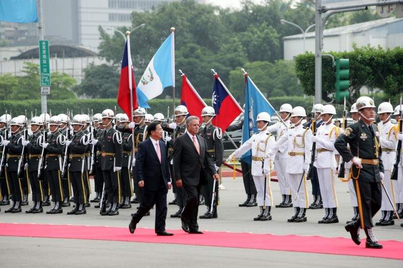 軍禮歡迎儀式上午九時三十分在總統府府前廣場舉行,在鳴放21響禮砲及演奏台、瓜兩國國歌後,兩國元首檢閱三軍儀隊,隨後,呂副總統秀蓮女士、中央政府首長及駐台使節團也參加歡迎儀式。