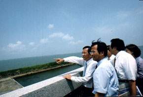 陳總統水扁先生今天上午前往台南縣七股鄉,參觀七股潟湖,及關心台南縣濱海國家風景區的未來發展情形。在聽取南瀛國家風景區推動委員會陳俊安執行長所做的簡報後,總統表示他是土生土長的台南縣人,非常了解台南海岸是西部沿海一帶海岸中,最乾淨、無污染的海邊,過去大家都在講,住在海邊比較沒有發展,但是經過蘇縣長和保育團體、漁民全力推動以後,台南縣沿海地區慢慢發展成生態旅遊的觀光地區,吸引不少人來遊玩,知名度增加以外,人潮也不斷增加。