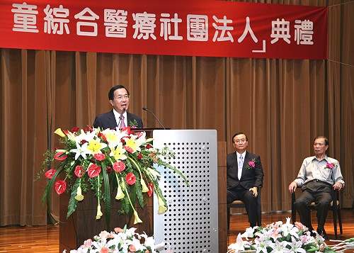 陳總統水扁先生今天上午參加童綜合醫院改制為「童綜合醫療社團法人」典禮,並應邀致詞。