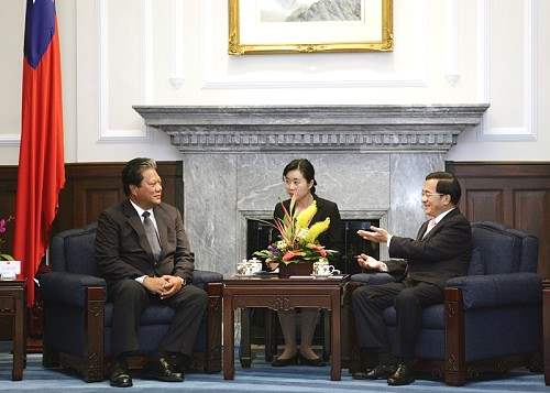馬紹爾群島共和國總統諾特伉儷,晚間由我國外交部部長黃志芳陪同,前來總統府拜會陳總統,總統府副秘書長陳其邁也在座。