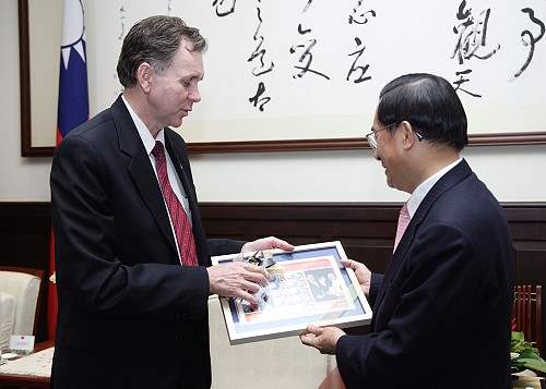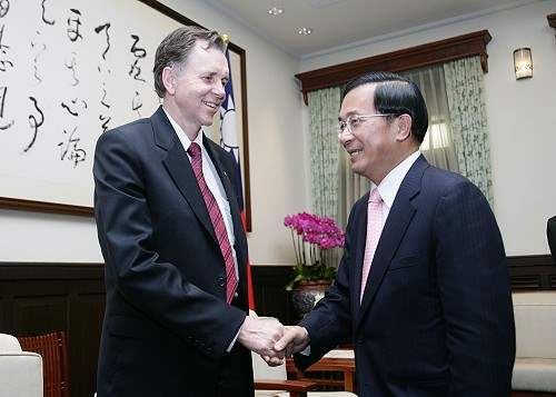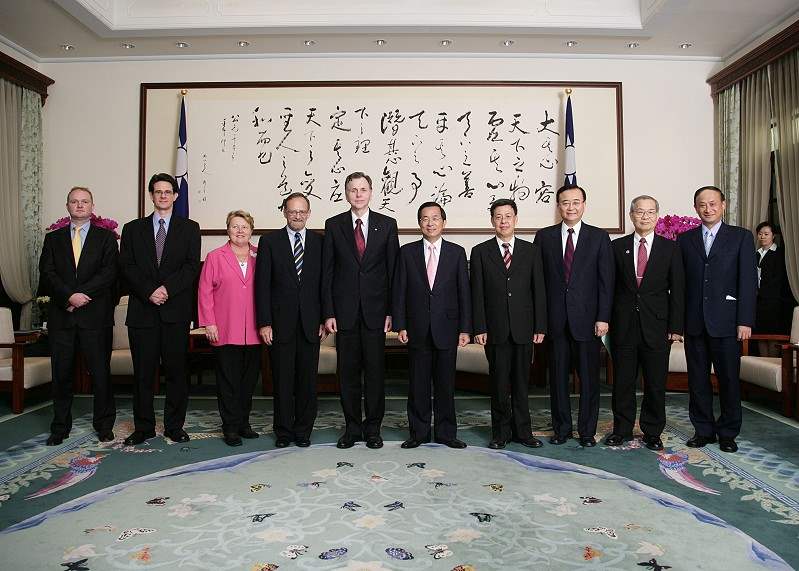馬歇爾教授下午由行政院國家科學委員會主任委員陳建仁、行政院衛生署署長侯勝茂陪同,前來總統府晉見總統,總統府副秘書長陳其邁也在座。