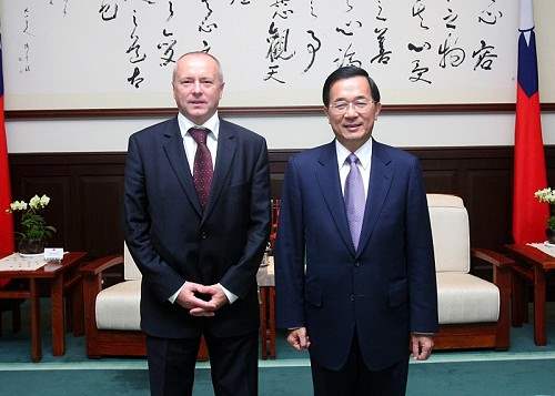 歐洲議會環境暨公共衛生與食品安全委員會主席歐智基下午由外交部次長楊子葆陪同,前來總統府晉見總統,總統府副秘書長陳其邁也在座。