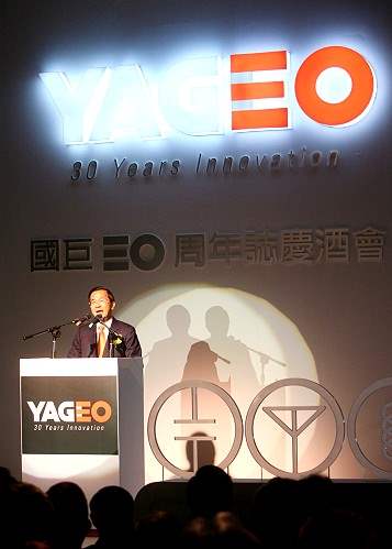 剛才在進入會場之前,看到「國巨」一路走來的輝煌歷史,特別是堅持信念突破困境,即使遭逢市場的低潮與微利化的衝擊,仍然能夠充份發揮活力、積極、成長、效率、創新及人文的「國巨」企業精神,成為全球電阻、電容、電感等被動元件製造的龍頭企業,不但是台灣企業的模範,更透過台灣在電子生產技術的優異表現,全面帶動被動元件產業順利拓展至全球市場,在今天三十周年誌慶酒會上,我們一起見證「國巨」的成功,更展現了國人兢業創新、不畏艱難、勇往直前的精神,再次為台灣的企業在國際上樹立優良的典範,意義至為重大。